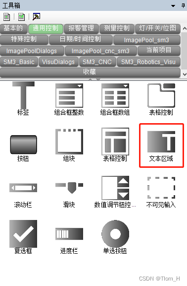 与上述方法一样,打开工具箱-通用控制-文本区域。将其拖拽到界面上。配置一个数据输入输出框需要三步。